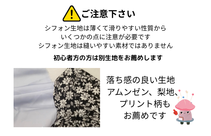 しかし、その反面、シフォン生地はとても扱いが難しく、ソーイング初心者さんにはややハードルが高め…。