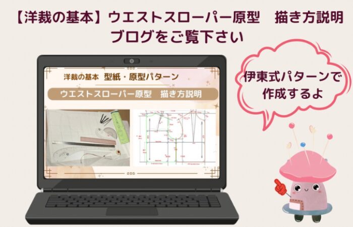 まずは、身頃の原型パターン、ウエストスローパーの原型型紙を描きましょう。