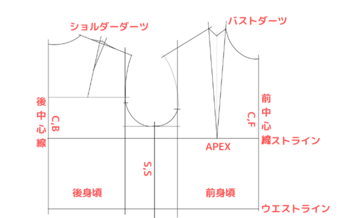 そのため、身頃の型紙作りは重要です。