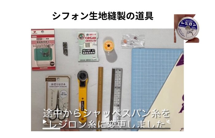 他社のシフォン生地でブラウスを作っても大丈夫です。工程は同じです。