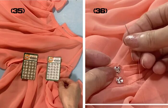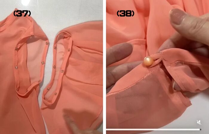 (36) 身頃側にスナップボタンの凹を、袖側には凸を取付けます。