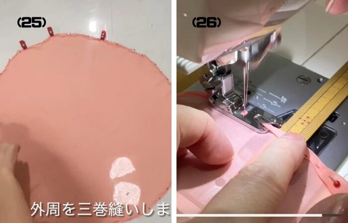 (25) 袖の外周を三巻始末をします。