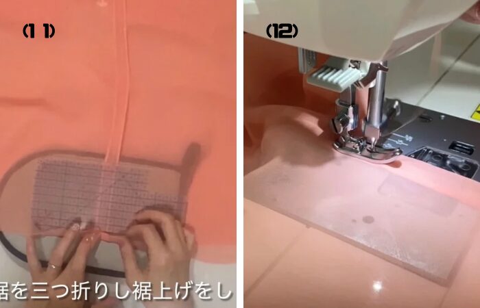 (12) ミシンで縫い裾上げをします。