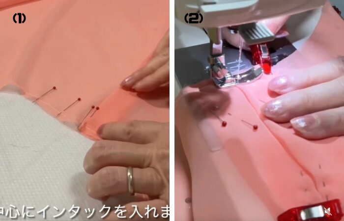 ⑴ 前身頃のタックをインタックになるように折り畳みます。
