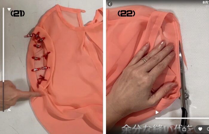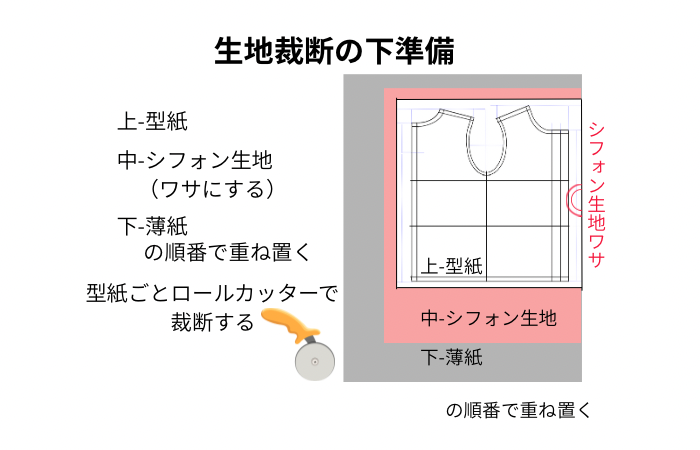 シフォンブラウスの裁断