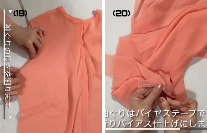 (19) 身頃のアームホールの長さを測ります。