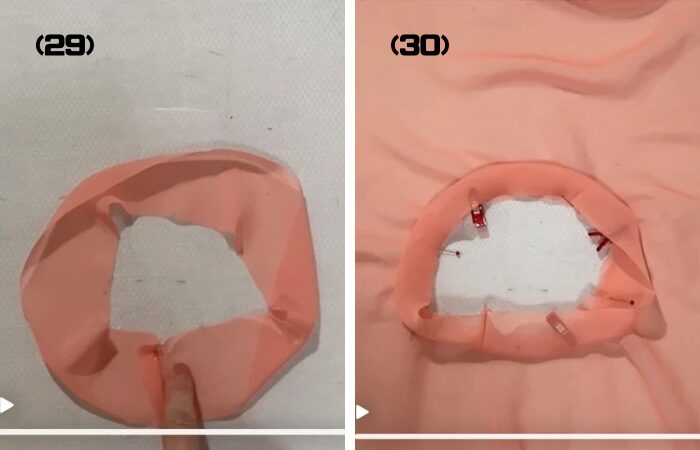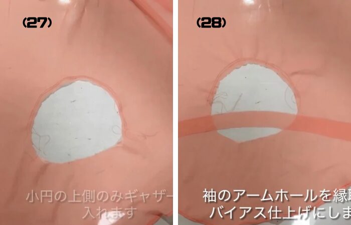 (27) 袖の内側の円にギャザーを寄せます。