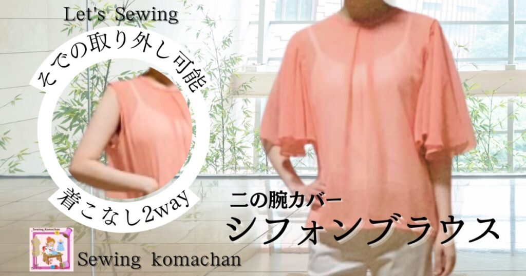 【Let’s Sewing】二の腕カバー シフォンブラウス 袖の取り外し可能 着こなし2way